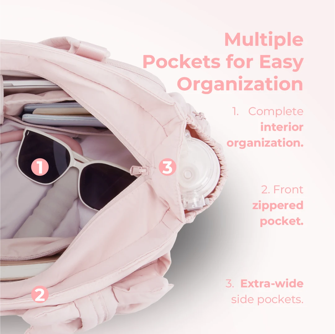 Keep everything organized with this tote bag designed for maximum functionality. Its spacious interior includes: